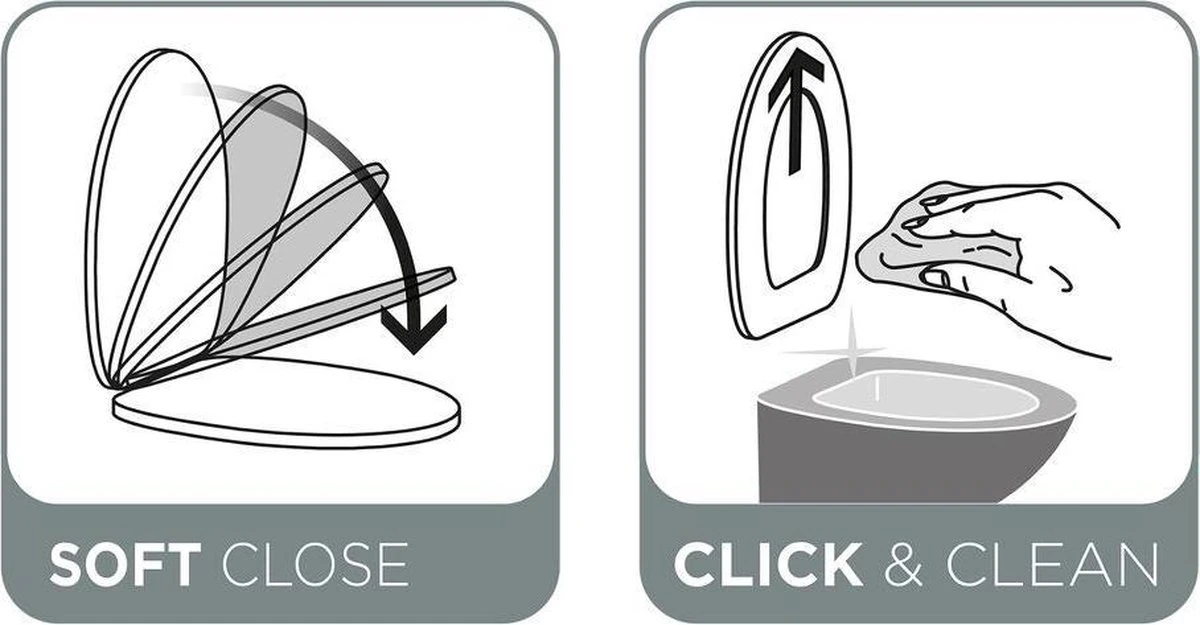 • Softclose sluiting: door de speciale scharnieren valt de toiletbril fluisterzacht neer. Wel zo rustig en veilig voor kleine vingertjes. De dempers voorkomen schade aan het keramiek van de toiletpot