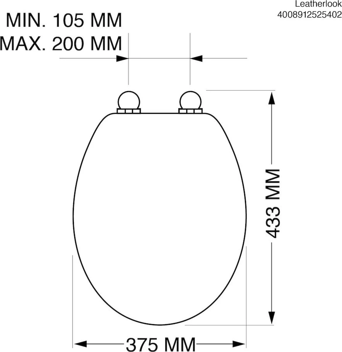 Tiger Leatherlook - Toiletbril - WC Bril - MDF - Zwart -Mooie Badkamer 1166x1200